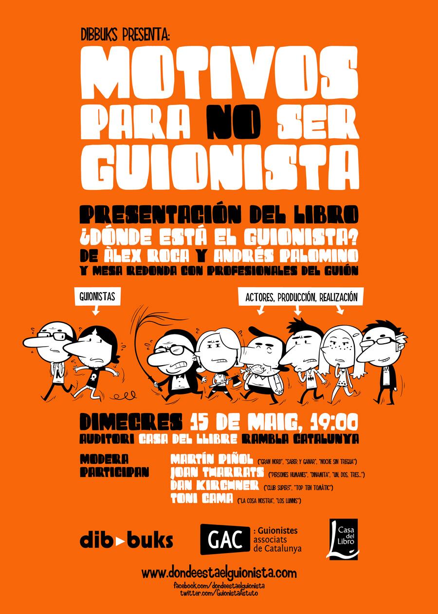 El 15 de maig del 2013, a La Casa del Llibre, hi ha la presentació del llibre ¿Dónde está el guionista? (Ed. Dibbuks) i taula redona amb professionals del guió. Amb la presència dels autors, Andrés Palomino i Álex Roca. Hi intervindran en Martí Piñol, en Joan Tharrats i en Dan Kirchner, guionistes.